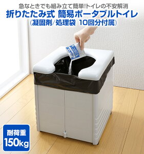 折りたたみ式 簡易ポータブルトイレ (凝固剤/処理袋 10回分付属) R-56 災害 防災 トイレ 簡易トイレ 緊急トイレ 非常用 断水 地震 防災用品 防災グッズ 簡単トイレ ポータブルトイレ サンコー 【送料無料】