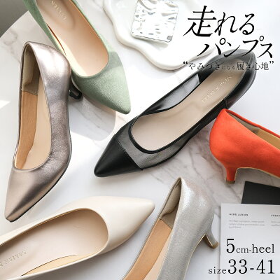 【サイズ交換送料無料】2022年春夏再販! パンプス 痛くない 歩きやすい ポインテッド 5cmヒール ローヒール クッション 脱げない 柔らかい スエード スムース 春夏 ブラック 黒 ベージュ 22.5 25.5 小さいサイズ 大きいサイズ ルリアンプラス CX2500SS