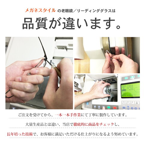商品について 度数+0.25から+4.00まで16種類の中からご注文いただけるセミオーダー老眼鏡(リーディンググラス)です。