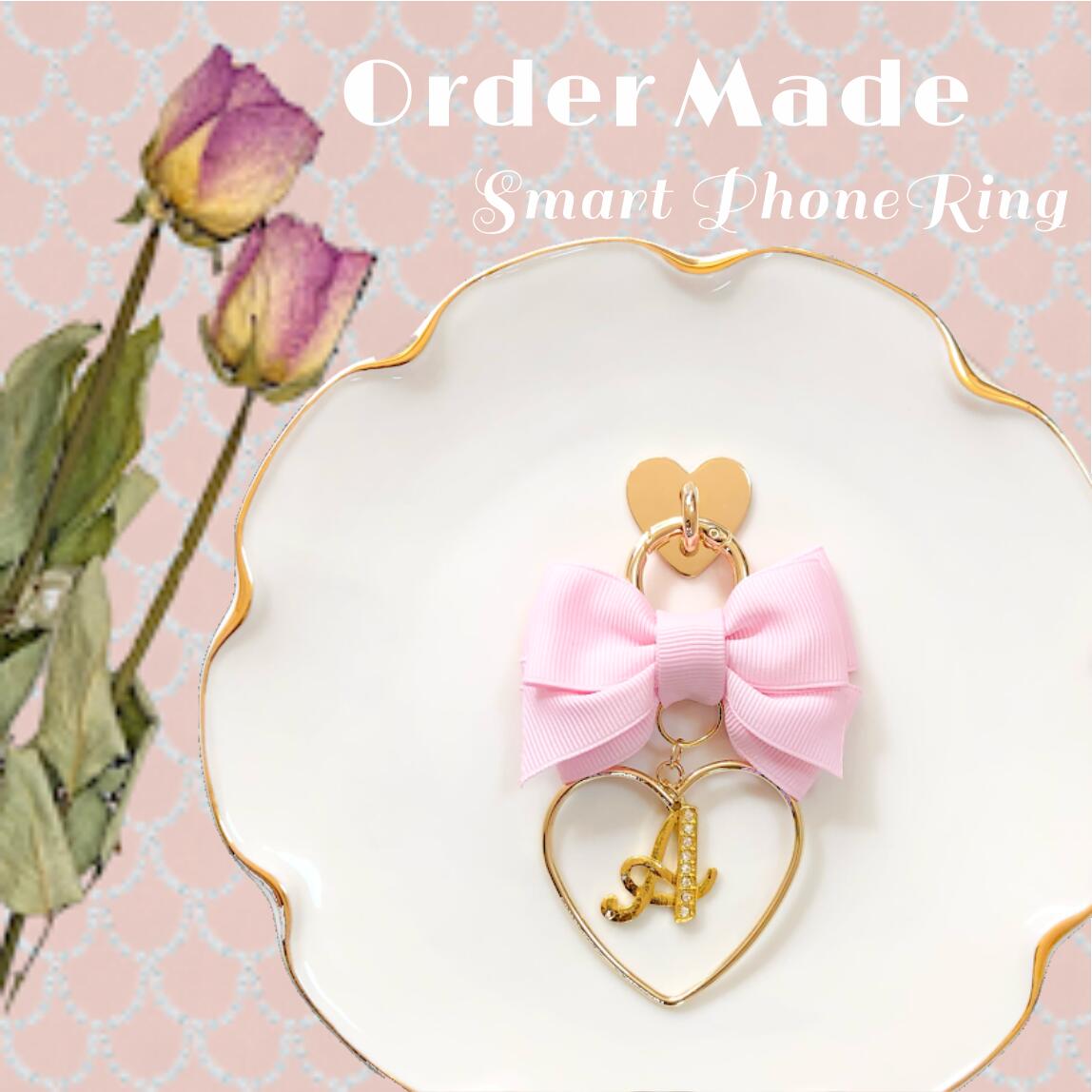 スマホ リング コロンリボン ハートフープ スマホ リング オーダーメイド iphone 全機種 韓国 シンプル おしゃれ かわいい 人気 カラビナ ホルダー バンカーリング 落下防止 フィンガーリング リボン スマホアクセサリー 【送料無料】