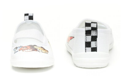 つま先にマックウィーンと仲間たちのプリントきっと毎日の通園が楽しみに!左右のデザインを変えることで、左右の靴の区別ができ、正しい向きに履くことができます。