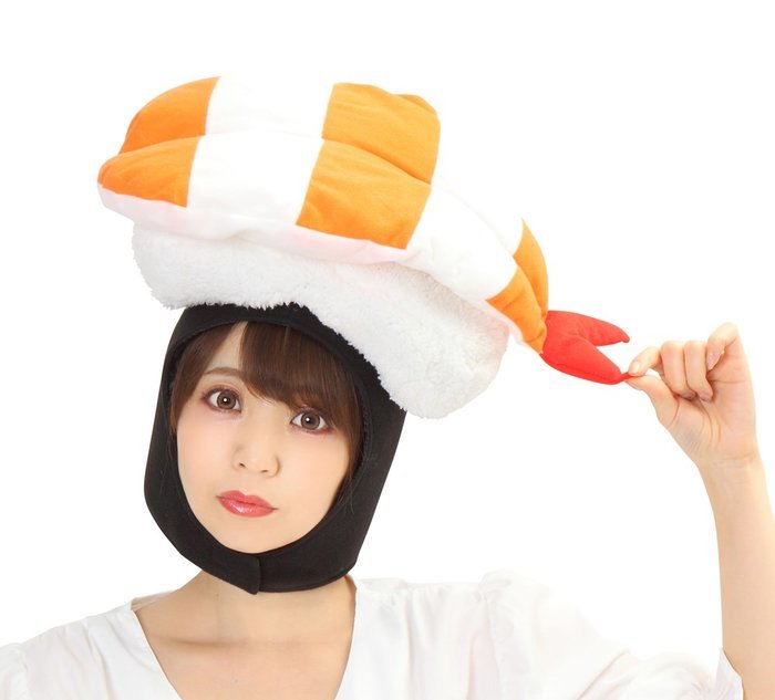 美味しそうなえびのお寿司のかぶりもの!お米部分はもこもこファーです。