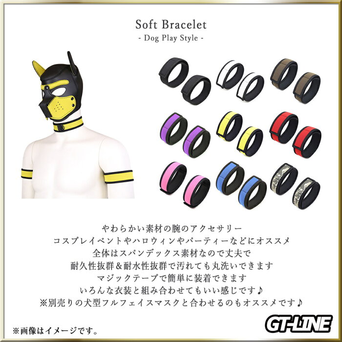 腕輪 やわらかい ブレスレット ソフト ハーネス コスプレ 手錠 調節可能 犬 ワンちゃん DOG 犬マスク 衣装 パーティー ハロウィン 耐水 LGBTQ GTLINE Favolic ファボリック
