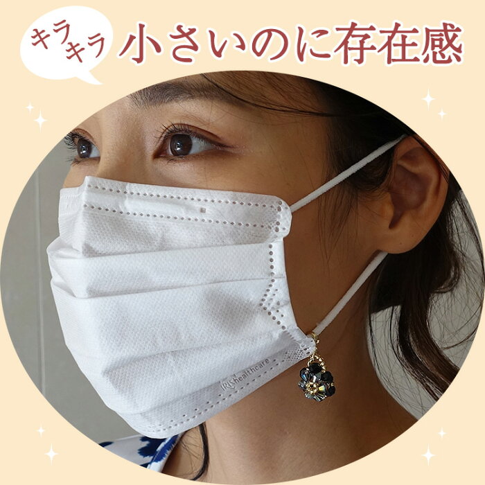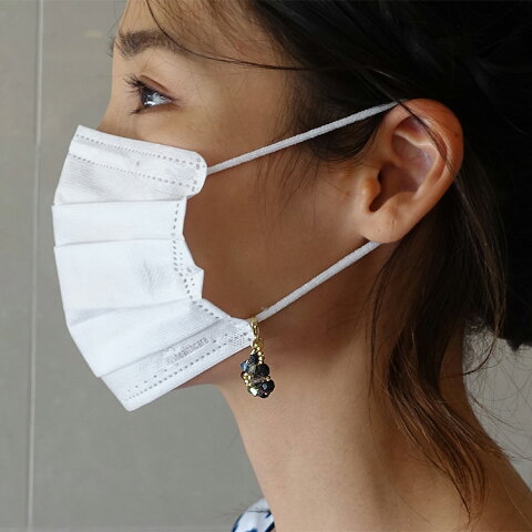 味気ない不織布マスクに可愛いワンポイント! 揺れるたびに、スワロフスキー ビーズがキラキラして小さいのに存在感! 両方の耳元に付けると、ピアス風になります。